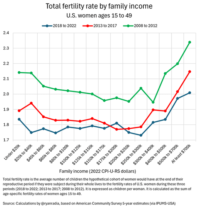 I have seen way too many people conclude that this graph shows that income barely matters for fertility.