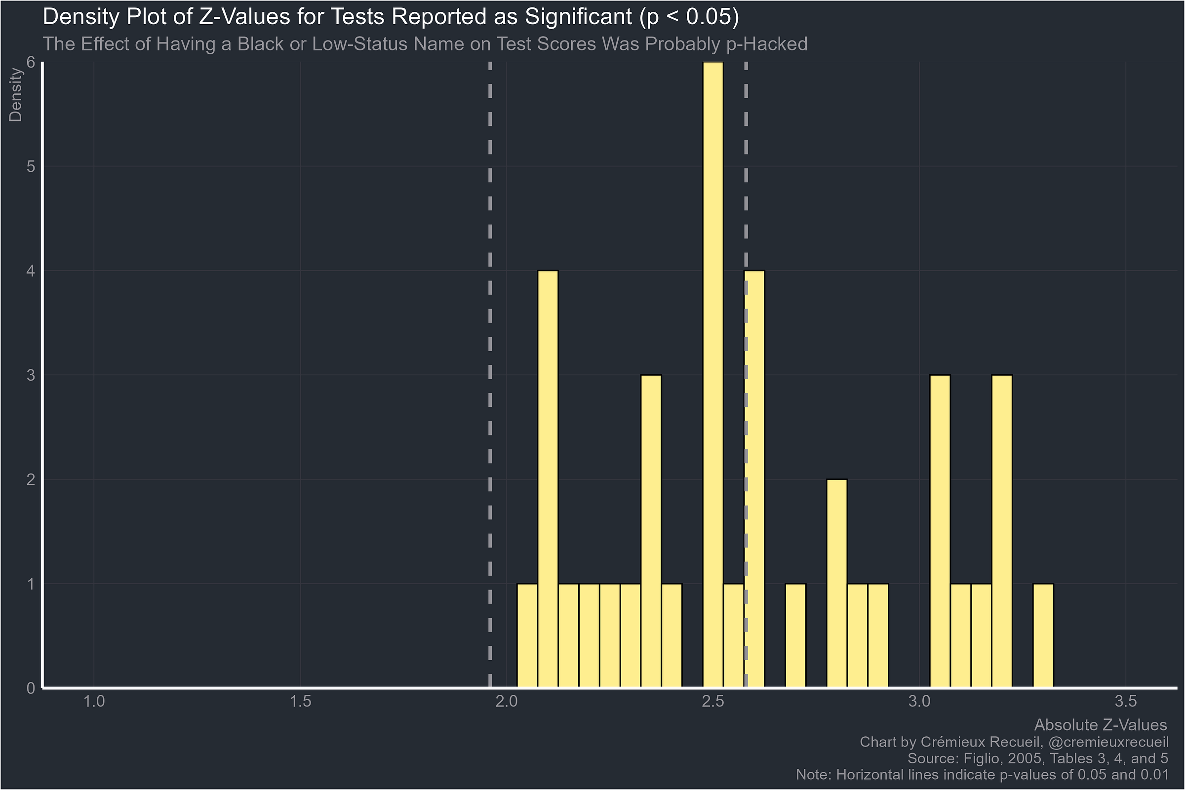 The p-hacking in this study was so extreme that 51.22% of the results that were reported as significant had p-values that were between 0.05 and 0.01. This should not happen.