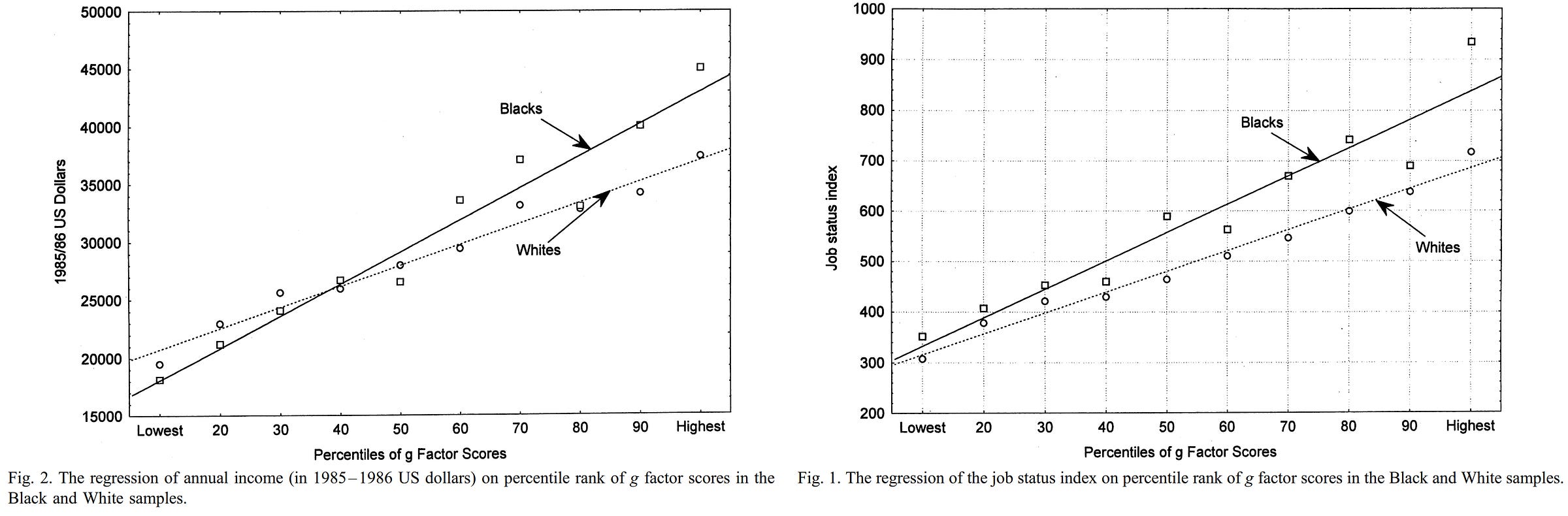 If you’ve read The Bell Curve, you’ll be familiar with many more examples. If you’ve read some of the better-informed replies to that book, you’ll also be familiar with many examples of this simple fact: test scores, or whatever they measure, matter. You can call it “preparedness”, “literacy”, “numeracy”, “academic achievement”, “school skills”, “intelligence”, or whatever other euphemism you wish, but regardless, what they measure is commonly measured by many tests and it’s important because it is an antecedent of various important outcomes. To repeat: controlling for it often largely or completely eliminates racial differences in those outcomes.2